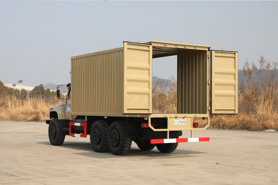 The engine has a preheating function, and the vehicle can start smoothly at an ambient temperature of -41°C. The cargo box floor is made of corrugated board with anti-slip patterns. It can effectively protect the people and materials in the cargo box in windy, sandy and rainy weather.